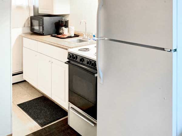 Short-term lodging in Grand Rapids, located on Highway 2. Some efficiencies have full-size fridge and microwave, while others have full kitchenettes.